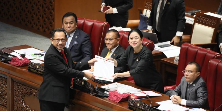 Rapat paripurna pengesahan RUU menjadi UU dipimpin Ketua DPR Puan Maharani. Tampak hadir Wakil Ketua DPR Lodewijk F Paulus dan Rachmat Gobel.
