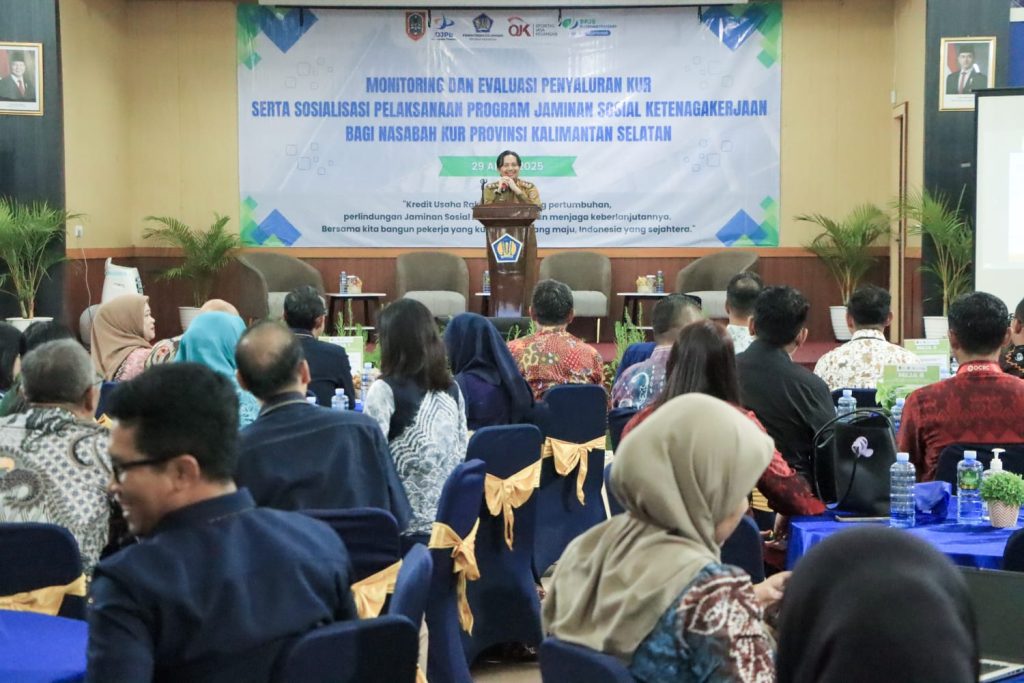 Hal ini diutarakan Wagub Hasnuryadi didampingi istri yang juga Wakil Ketua TP PKK drg Ellyana Trisya Hasnuryadi saat menghadiri kegiatan Monitoring dan Evaluasi Penyaluran KUR serta Sosialisasi Pelaksanaan Program Jaminan Sosial Ketenagakerjaan bagi Nasabah KUR di Provinsi Kalsel, Selasa (29/94/2025) di Aula Kanwil DJPb Jalan Mayjen DI Panjaitan Banjarmasin.