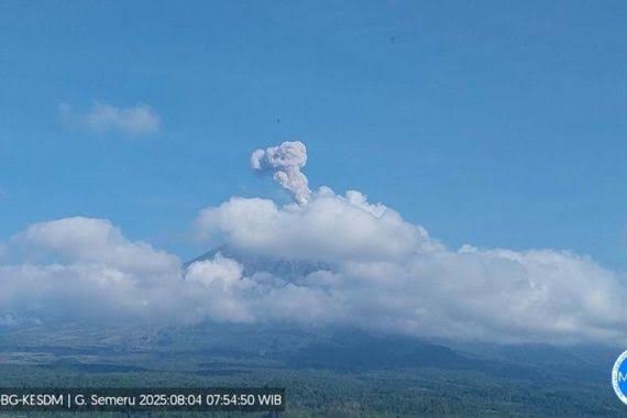 “Terjadi erupsi Gunung Semeru pada pukul 07.52 WIB. Tinggi kolom letusan teramati sekitar 800 meter di atas puncak atau 4.476 meter di atas permukaan laut (mdpl),” kata Petugas Pos Pengamatan Gunung Semeru, Mukdas Sofian, melalui keterangan resmi, Senin (4/8/2025) sebagaimana dilansir infopublik.id.