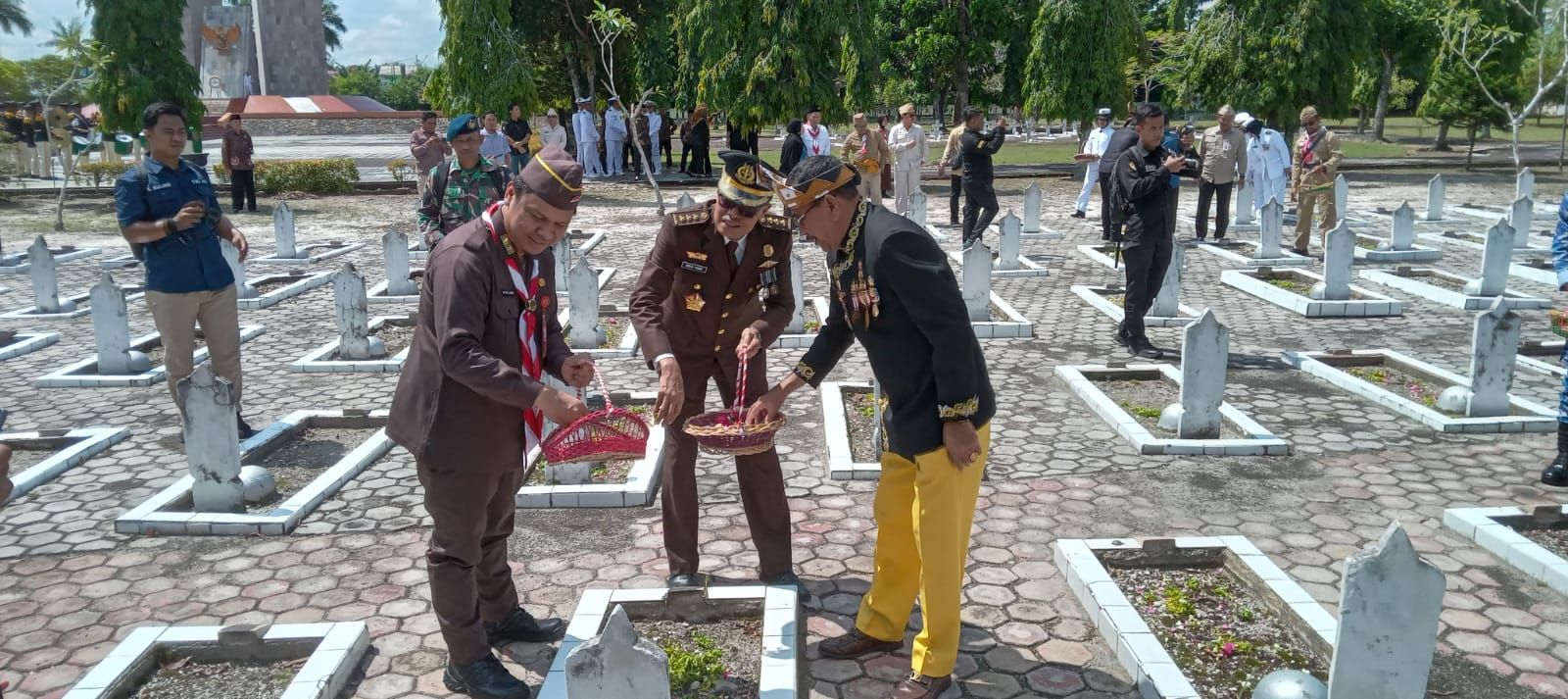 Dilanjutkan dengan mengheningkan cipta, peletakan karangan bunga, pembacaan doa, dan diakhiri dengan tabur bunga di pusara sejumlah pahlawan.